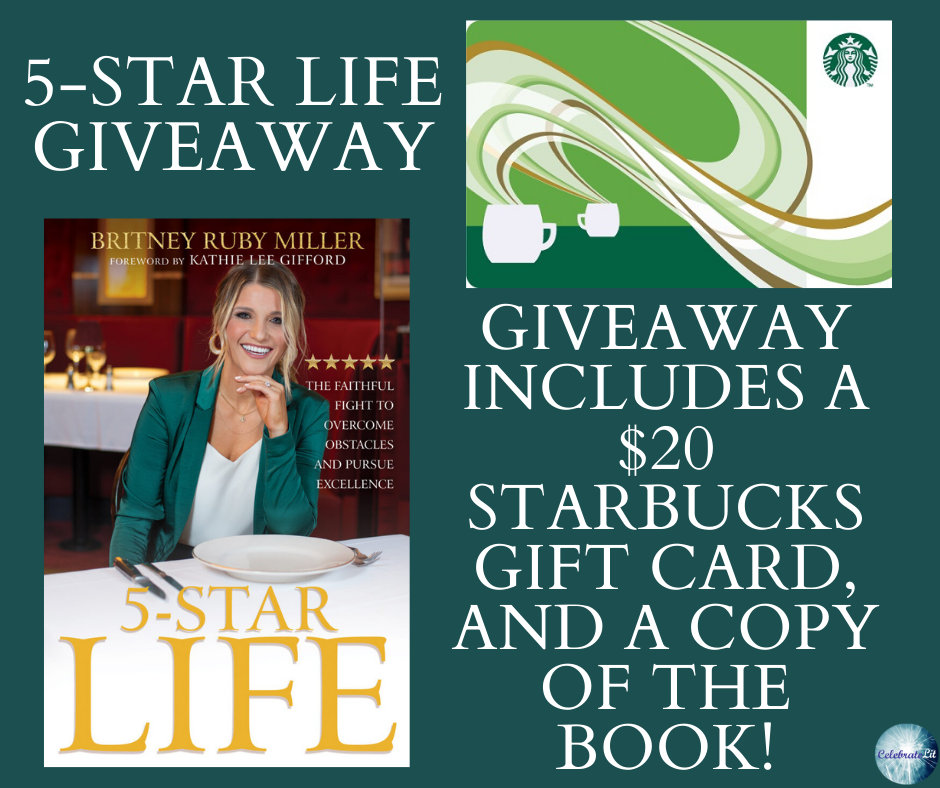 To celebrate her tour, Brittney is giving away the grand prize package of a $20 Starbucks gift card and a copy of the book!!